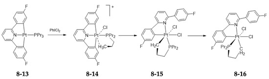 - Canty, A.J.; Van Koten, G. Mechanisms of d8 organometallic reactions involving electrophiles and intramolecular assistance by nucleophiles. Accounts Chem. Res. 1995, 28, 406–413. [Google Scholar] [CrossRef]