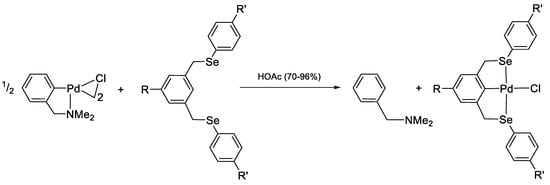 - Lamb, J.R.; Stepanova, V.A.; Smoliakova, I.P. Transcyclopalladation on silica gel. Polyhedron 2013, 53, 202–207. [Google Scholar] [CrossRef]