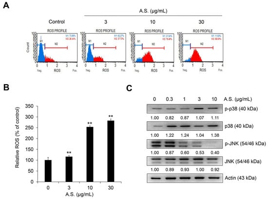 2.2. A.S. Extract Induces MAPK p38-Mediated ROS Production