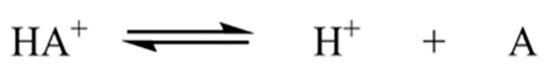 In these equations, [KOH] represents the concentration that the alkali would achieve by dilution if no other substance was present in the solution. The concentration of [AAE]X is 0.100 mol·L−1, so we can ignore the activity coefficient. Then pKa can be obtained by combining Equations (3) and (10):