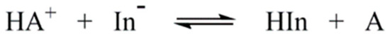 The overlapping indicator method (OIM) is a mature method to determine the pKa values [38,39]. The acid dissociation reaction of [AAE]X in water and ethanol can be simplified by the expression in Scheme 1.