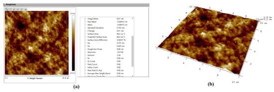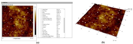Figure 15 shows the AFM surface morphology and roughness results of Si surface before ultraviolet induced nanoparticle colloid jet machining. In the analysis area of about 86 μm2 the surface roughness is Rq 1.70 nm (Ra 0.965 nm). Combining with the AFM micrograph, a large number of surface protrusions, concave valleys and scratches left by the pre-process can be found on the original Si workpiece surface, and the maximum p-v value of surface protrusions and surface concave valleys is 55.4 nm. The AFM surface morphology and roughness results of the Si surface after ultraviolet induced nanoparticle colloid jet machining are shown in Figure 16. Within the same analysis area, the surface roughness is decreased to Rq 0.791 nm (Ra 0.629 nm). The surface protrusions, concave valleys and scratches are obviously removed and the maximum p-v value of the surface protrusions and surface concave valleys is reduced to 8.91 nm.