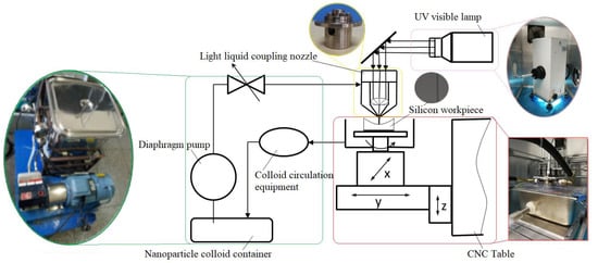 The system diagram of ultraviolet induced nanoparticle colloid jet machining.