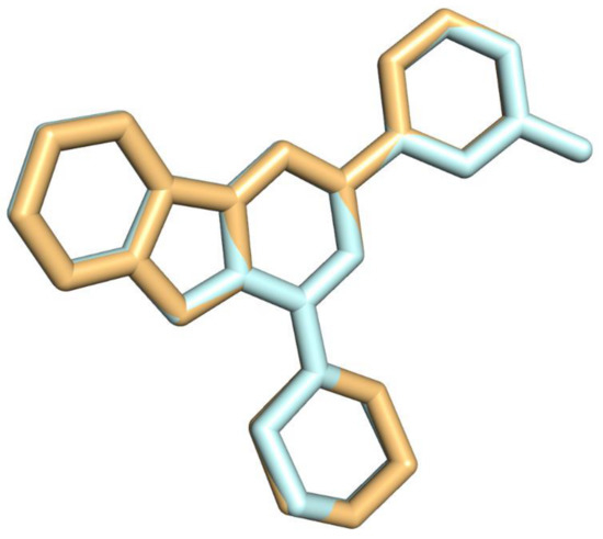 To evaluate the execution of the IFD algorithm, we compared the docked pose of X6K in WT PI3Kα (PDB ID: 4L23) [39] to its native geometry in the crystal assembly. Figure 6 demonstrates the overlaying of the IFD-extracted X6K conformation and its native geometry in 4L23. The RMSD for heavy atoms of X6K between IFD-extracted docked conformation and the native pose was 0.169 Å. The result infers that IFD can determine the native geometry in crystal co-ordinates and prosperously anticipate the ligand binding pose.