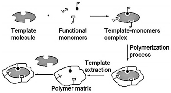 General scheme of preparation and recognition mechanism of MIPs [96]. Reproduced with permission of Elsevier.