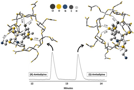- Salgado, A.; Tatunashvili, E.; Gogolashvili, A.; Chankvetadze, B.; Gago, F. Structural Rationale for the Chiral Separation and Migration Order Reversal of Clenpenterol Enantiomers in Capillary Electrophoresis Using Two Different β-Cyclodextrins. Phys. Chem. Chem. Phys. 2017, 19, 27935–27939. [Google Scholar] [CrossRef] [PubMed]