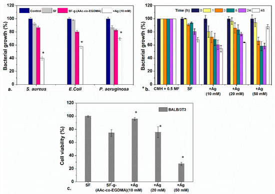 ) SF-g-(AAc-co-EGDMA) + Ag and (
