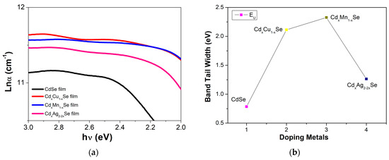 - Urbach, F. The long-wavelength edge of photographic sensitivity and of the electronic absorption of solids. Phys. Rev. 1953, 92, 1324. [Google Scholar] [CrossRef]