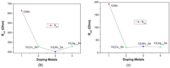 | Atom% | JSC (mA/cm2) | FF | VOC (V) | η (%) | RD (Ω) | Rd (Ω) | RSH (kΩ) | RS (Ω) | Rct1 (Ω) | Rct2 (Ω) |