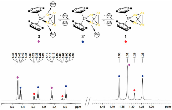 3.2.2. Synthesis and Characterization of [Cp″2Zr(µ3,η1:1:1:1-As4)(CpMn(CO)2)2] (3)