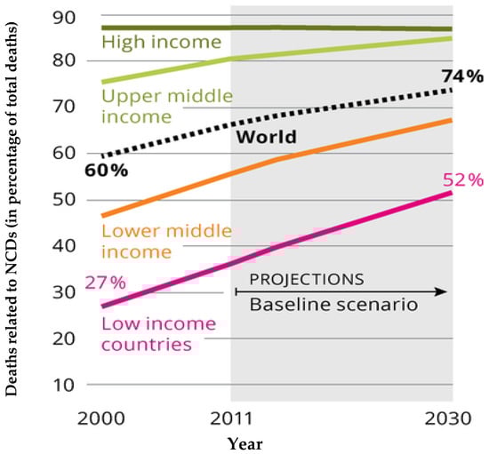 Future development of NCDs across world income regions. Source: European Environment Agency (2017). Downloaded from: https://www.eea.europa.eu/data-and-maps/figures/the-shift-in-global-disease [6].