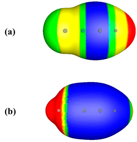 - Bulat, F.A.; Toro-Labbé, A.; Brinck, T.; Murray, J.S.; Politzer, P. Quantitative analysis of molecular surface properties: Areas, volumes, electrostatic potentials and average local ionization energies. J. Mol. Model. 2010, 16, 1679–1691. [Google Scholar] [CrossRef]