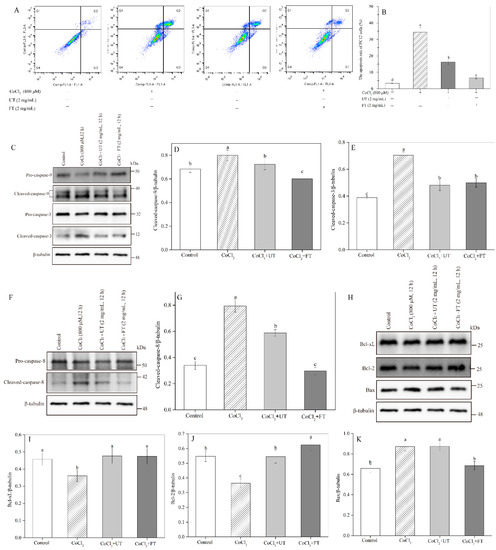 2.5. Retardation of CoCl2—Induced Cell Apoptosis by the UT and FT