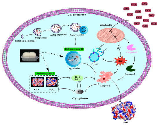 Studies on degenerative brain diseases have attracted significant attention in recent years due to the potential to prolong lifespan [11]. Reactive oxygen species (ROS) levels play a vital role in the development of neurodegenerative diseases, including Parkinson and Alzheimer Disease, by oxidizing biomacromolecules (DNA, proteins, and lipids), destroying mitochondrial function, and promoting neuronal apoptosis [11]. Therefore, preventing oxidative-stress-induced apoptosis may be a potential therapeutic strategy in treating neurodegenerative diseases [12]. Many studies have been performed to develop healthy and functional foods that help improve memory or cognitive abilities by using natural products, such as ginkgo leaf, evodia fruit, angelica root, and Codonopsis lanceolata [13]. In the present study, the neuroprotective effects of fermented tofu with A. elegans against hypoxic injury induced by cobalt chloride (CoCl2) in PC12 cells were investigated. The efforts were also made to study the effects of fermented tofu on autophagy in PC12.