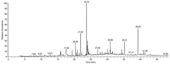 The total ion chromatograms of compounds determined by GC-MS of RLE.