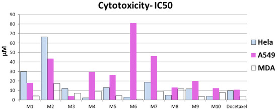 | Compound No. | Group M | Cytotoxicity IC50 µM | |||