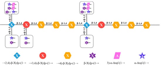 - Wang, J.; Bai, J.; Fan, M.; Li, T.; Li, Y.; Qian, H.; Wang, L.; Zhang, H.; Qi, X.; Rao, Z. Cereal-derived arabinoxylans: Structural features and structure-activity correlations. Trends Food Sci. Tech. 2020, 96, 157–165. [Google Scholar] [CrossRef]