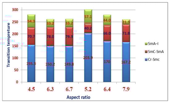 Dependence of the aspect ratios of the prepared compounds with mesomorphic behaviours.