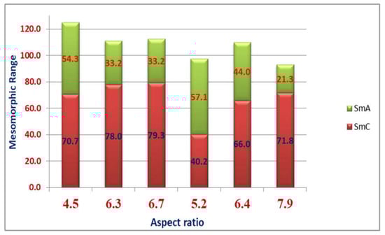 Dependence of the aspect ratio of the prepared compounds with the mesomorphic range.
