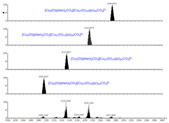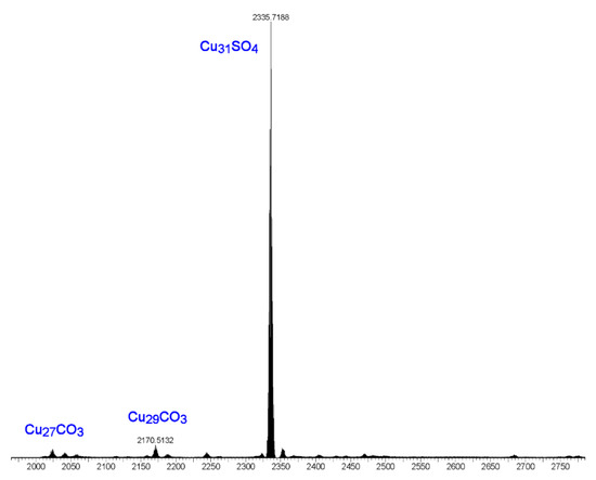 - Ahmed, B.M.; Szymczyna, B.R.; Jianrattanasawat, S.; Surmann, S.A.; Mezei, G. Survival of the Fittest Nanojar: Stepwise Breakdown of Polydisperse Cu27–Cu31 Nanojar Mixtures into Monodisperse Cu27(CO3) and Cu31(SO4) Nanojars. Chem. Eur. J. 2016, 22, 5499–5503. [Google Scholar] [CrossRef]