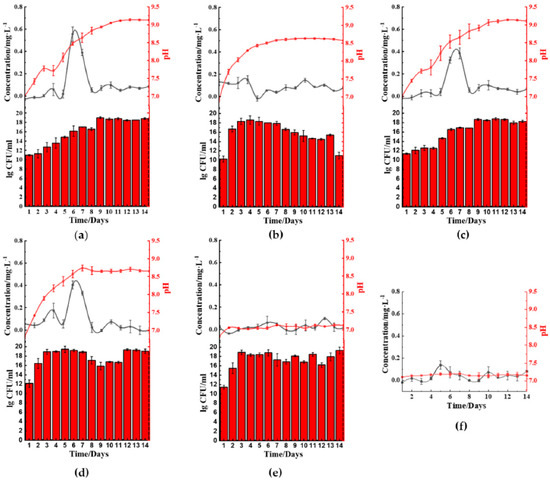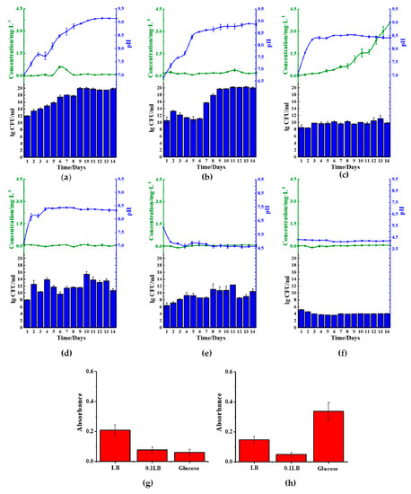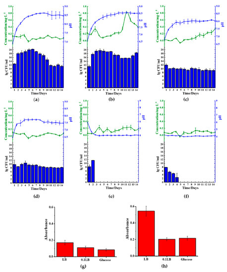 ): pH value, and bar chart: log10 colony forming unit (CFU)·mL−1; LB: lysogeny broth.