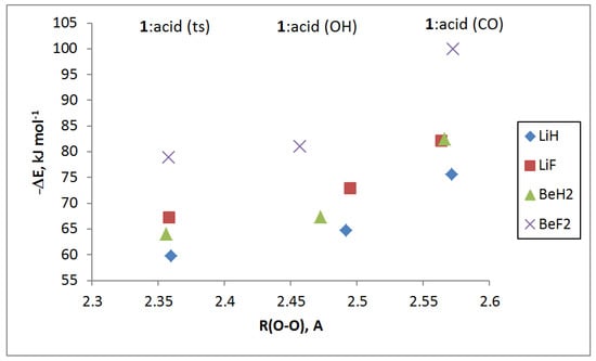 - Mó, O.; Yáñez, M.; Alkorta, I.; Elguero, J. Modulating the Strength of Hydrogen Bonds through Beryllium Bonds. J. Chem. Theory Comput. 2012, 8, 2293–2300. [Google Scholar] [CrossRef] [PubMed]