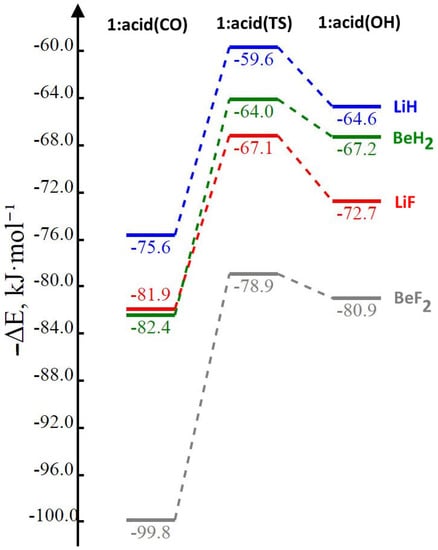 | C3H4O2:BeH2 at C=O | 10.0 | 7.8 | −81.4 |