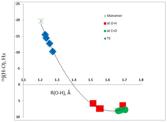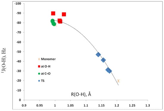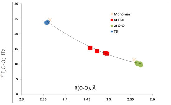 - EOM-CCSD spin–spin coupling constants 2hJ(O–O), 1hJ(H–O), and 1J(O–H) were computed for all equilibrium and transition structures. Plots of 2hJ(O–O) versus the O–O distance, 1hJ(H–O) versus the H–O distance across the hydrogen bond, and 1J(O–H) versus the covalent O–H bond distance of 1 exhibit a second-order dependence of the coupling constant on the corresponding distance, with very high correlation coefficients.