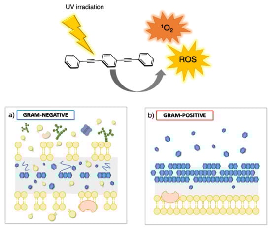 - Wang, J.; Zhuo, L.; Liao, W.I.; Yang, X.; Tang, Z.; Chen, Y.; Luo, S.; Zhou, Z. Assessing the Biocidal Activity and Investigating the Mechanism of Oligo-p-phenylene-ethynylenes. ACS Appl. Mater. Interfaces. 2017, 9, 7964–7971. [Google Scholar] [CrossRef]