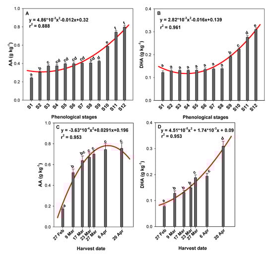2.1. Effect of the Phenological Stage and Harvest Date on Ascorbic Acid (AA) and Dehydroascorbic Acid (DHA) Content