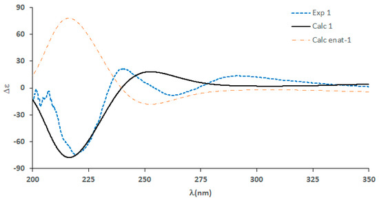 Experimental and calculated ECD spectra of 1.