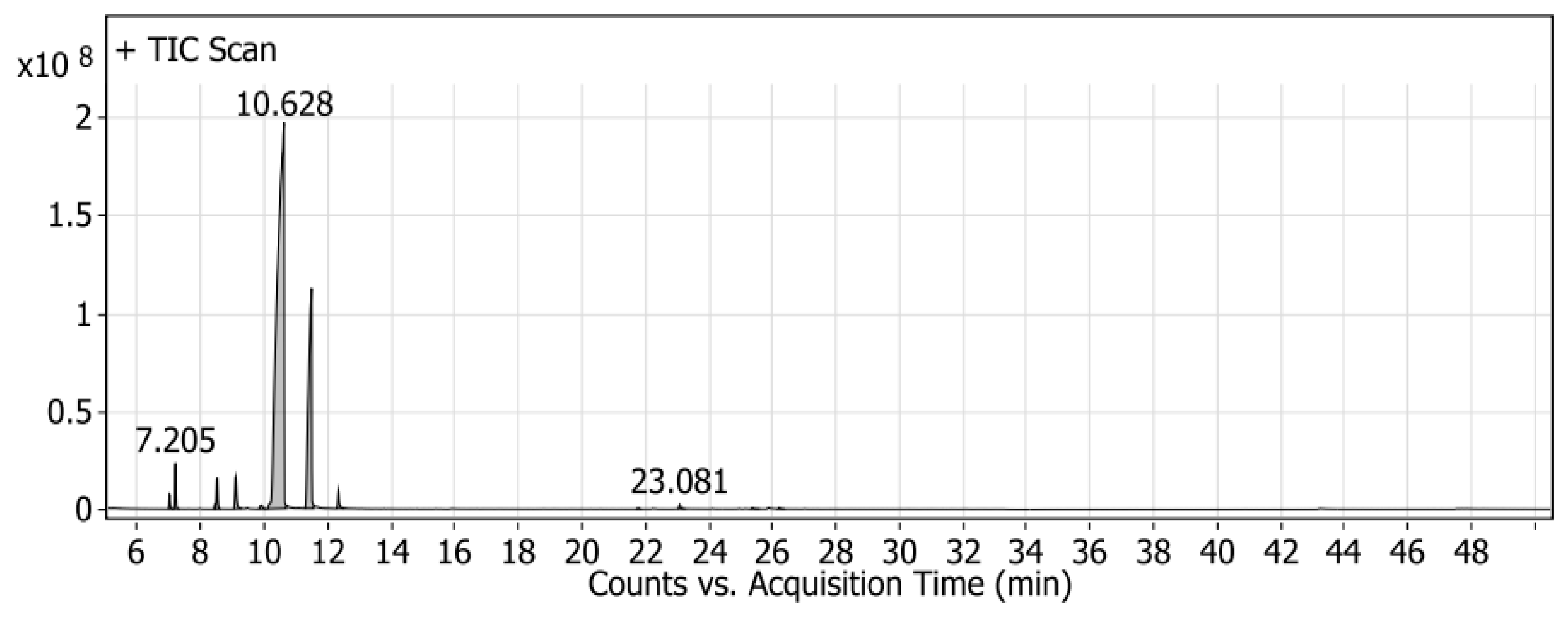 3.2. Gas Chromatography-Mass Spectrometry Analysis (GC/MS)