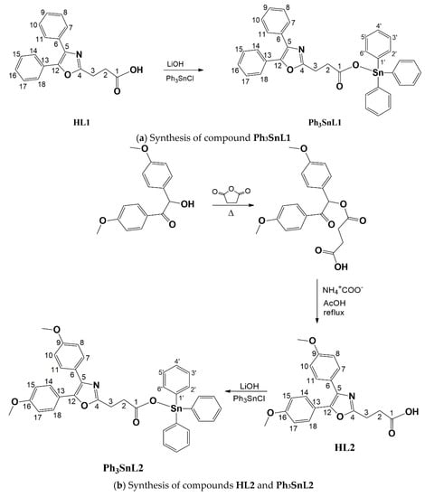 Synthesis of compounds Ph3SnL1, HL2, Ph3SnL2, HL3 and Ph3SnL3.
