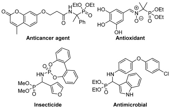 - Damiche, R.; Chafaa, S. Synthesis of new bioactive aminophosphonates and study of their antioxidant, anti-inflammatory and antibacterial activities as well the assessment of their toxicological activity. J. Mol. Struct. 2017, 1130, 1009–1017. [Google Scholar] [CrossRef]
