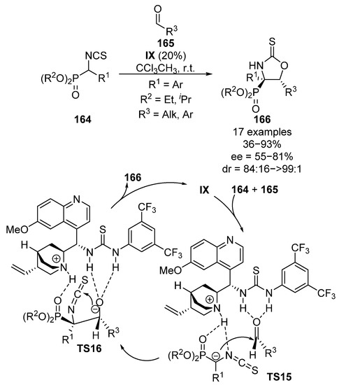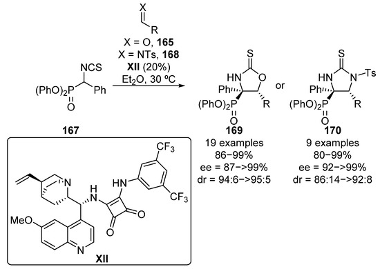 - Han, W.Y.; Zhao, J.Q.; Wu, Z.J.; Zhang, X.M.; Yuan, W.C. Asymmetric synthesis of β-hydroxy-α-amino phosphonic acid derivatives via organocatalytic direct aldol reaction of α-isothiocyanato phosphonates with aldehydes. J. Org. Chem. 2013, 78, 10541–10547. [Google Scholar] [CrossRef] [PubMed]