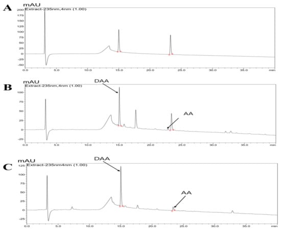 4.3. Quantification of DAA and AA by HPLC-PDA Analysis