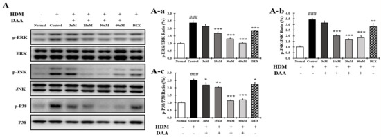 2.16. DAA Inhibited MAPK Phosphorylation and NF-κB Activation Increased by HDM in EOL-1 Cells