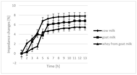 | Goat’s milk | after incubation | 40.29 ± 0.964 A | 32.58 ± 1.201 A | 21.12 ± 0.995 A | 22.21 ± 1.204 A |