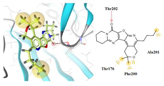 | 6k | −7.95 | 1 | Thr202 | Thr176, Phe200, Ala201 | - |