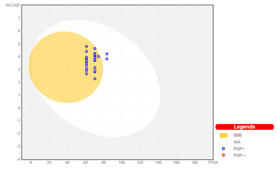 | No. | MW | Number of HBA a | Number of HBD b | Log Po/w (iLOGP) c | Log S d | TPSA e | BBB Permeant f | Lipinski, Ghose, Veber, Egan, and Muegge Violations | Bioavailability SCORE | Drug-Likeness Model Score |