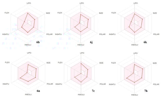 | 6b | 337.42 | 4 | 0 | 3.60 | Poorly soluble | 60.92 | Yes | 0 | 0.55 | 0.97 |