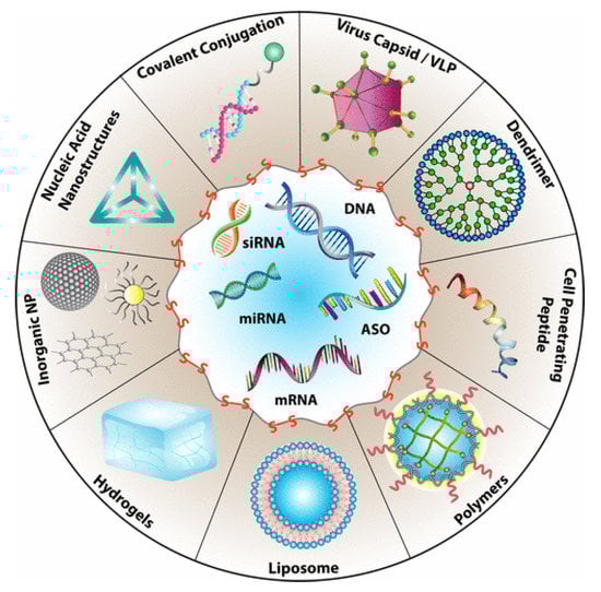Types of drug delivery systems that rely on the presence of disulfide bonds for the targeted delivery of nucleic acids. Reprinted with permission from [10]. Copyright (2021) American Chemical Society.