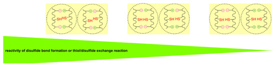 The reviews of Dutta [10], Wang [11], and Saitoa [12] focus on disulfide-based drug delivery systems. Another notable application is in the field of biomedicine, which merges biological and physiological principles within clinical science. Biomedicine often deals with mucoadhesive materials, which contain thiols and/or disulfides that penetrate mucosal membranes by binding with free thiol side chains from Cys residues [2].