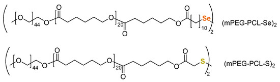- Zhang, L.; Lui, Y.; Zhang, K.; Chen, Y.; Luo, X. Redox-responsive comparison of diselenide micelles with disulfide micelles. Colloid Polym. Sci. 2019, 297, 225–238. [Google Scholar] [CrossRef]