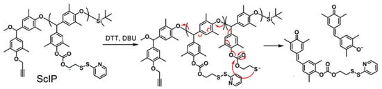 - Xiao, Y.; Li, Y.; Zhang, B.; Li, H.; Cheng, Z.; Shi, J.; Xiong, J.; Bai, Y.; Zhang, K. Functionalizable, Side Chain-Immolative Poly(benzyl ether)s. ACS Macro Lett. 2019, 8, 399–402. [Google Scholar] [CrossRef]