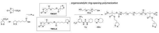 - Kalarickal, N.C.; Rimmer, R.; Sarker, P.; Leroux, J.C. Thiol-Functionalized Poly(ethylene glycol)-b-polyesters: Synthesis and characterization. Macromolecules 2007, 40, 1874–1880. [Google Scholar] [CrossRef]