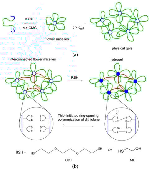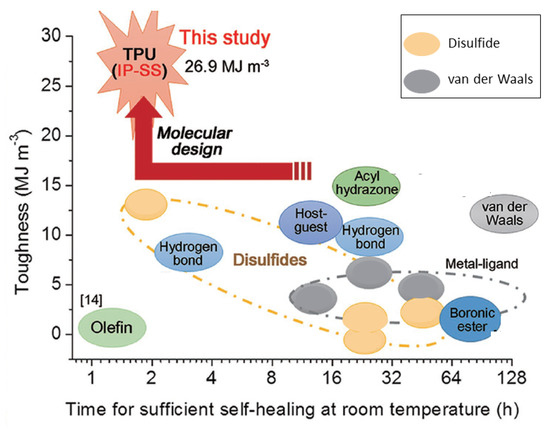 - An, S.Y.; Noh, S.M.; Nam, J.H.; Oh, J.K. Dual Sulfide-Disulfide Crosslinked Networks with Rapid and Room Temperature Self-Healability. Macromol. Rapid Commun. 2015, 36, 1255–1260. [Google Scholar] [CrossRef]