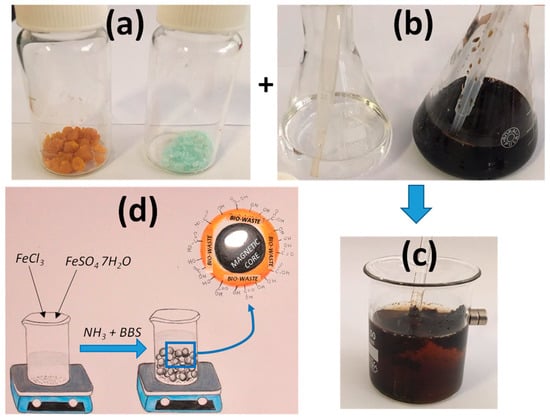In order to obtain the BBS to be used for the preparation of core–shell magnetic material, starting from organic waste, it is necessary to go through several steps.