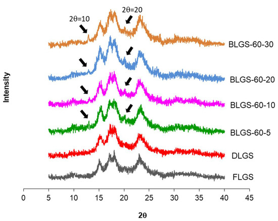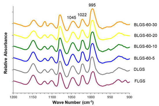 | BLGS-70-20 | 70 | 20 | 27.76 ± 3.78 d,e | 23.89 ± 1.73 b,c | 31.69 ± 2.12 a | 83.34 ± 2.73 b,c |