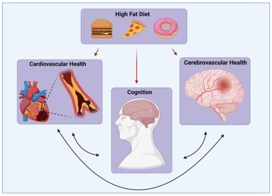 Detrimental Effects of an HFD. Consumption of an HFD can impair cardiovascular, cerebrovascular, and cognitive health.